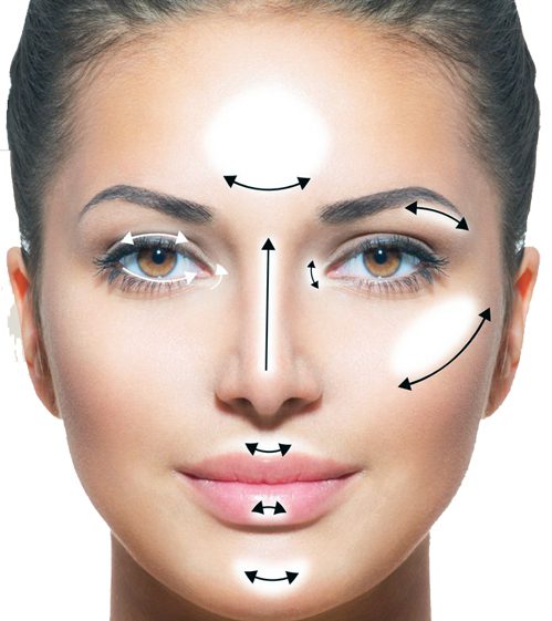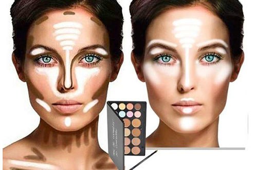 Цель данной техники – визуальное моделирование овала лица. Играя на контрасте темных и светлых оттенков конисилеров можно существенно изменить очертания лица, подчеркнуть его достоинства и скрыть недостатки. Основная хитрость – те зоны, которые нужно скрыть или уменьшить, следует подчеркнуть темными оттеками консилеров. Участки лица, нуждающиеся в объеме, следует выделить светлыми оттенками.