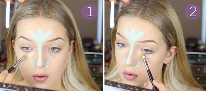 - Сперва на лицо наносится праймер или основа под макияж, и только потом корректор, после чего уже можно использовать тональный крем или лучше пудру.