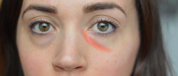 Розовый корректор может с легкостью замаскировать синеватые синяки под глазами, да и не только, любые гематомы лучше всего замазывать именно такого оттенка средствами, однако только тогда, когда они уже приобрели зеленоватый оттенок. Причем стоит обратить особое внимание на зонирование, так как на зеленом фоне пастельный или розовый корректор будет уместным, а на синем даст ужасный фиолетовый отсвет, который только усугубит ситуацию.